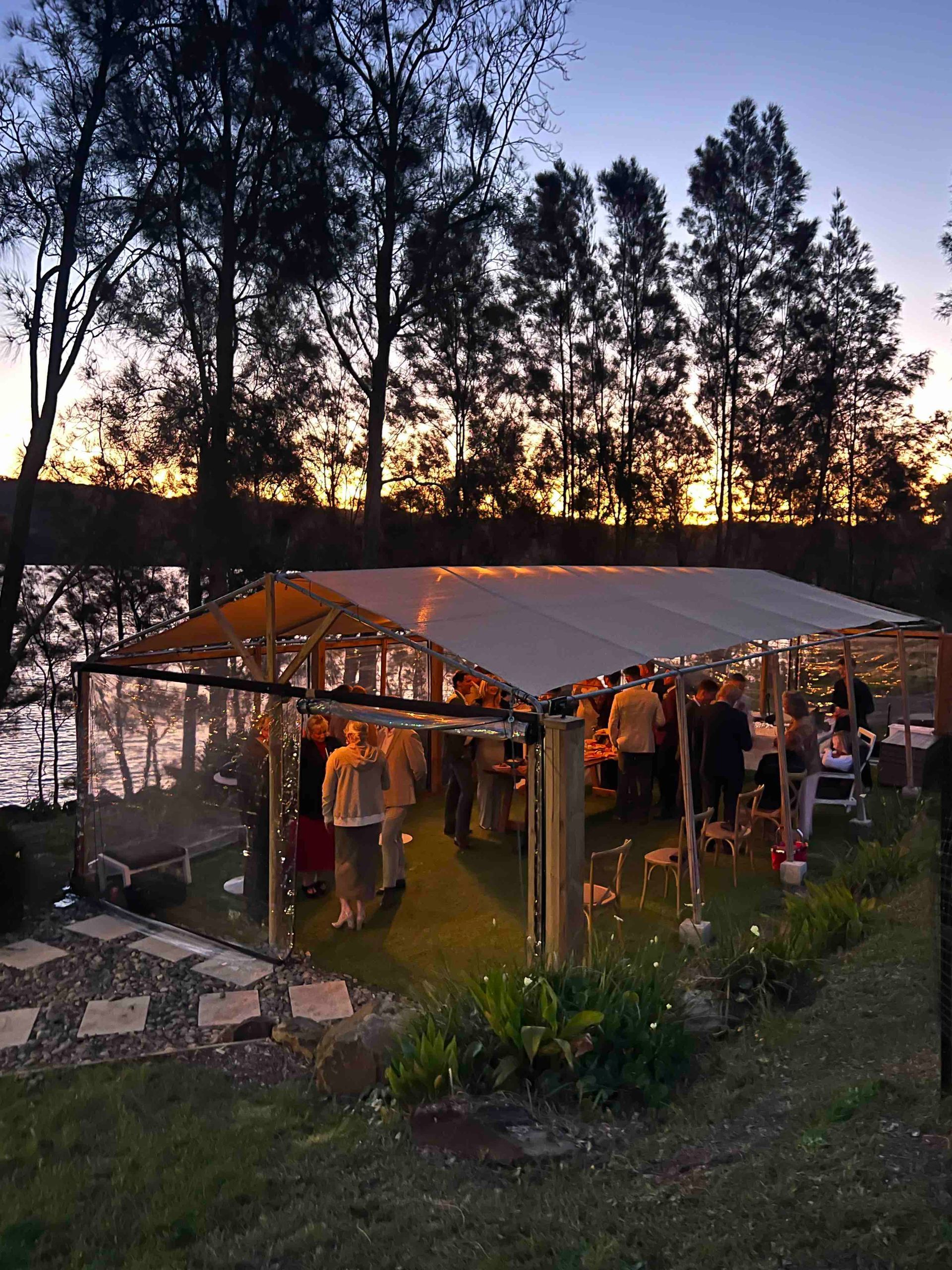 Our "Athletic Court" is a beautiful all weather, covered 10.5m x 4.5m facility with water proof hyberbolic canopies. Gym mats, yoga mats, kettle bells and some basic cardio equipment is available for you to exercise before using the sauna or swimming off the jetty for a full retreat experience. If you book a private yoga class during your stay you can practice here, the sun deck or at your accomodation. This area is perfect for hosting function meals, wedding ceremonies, wedding receptions, wellness workshops, corporate events etc