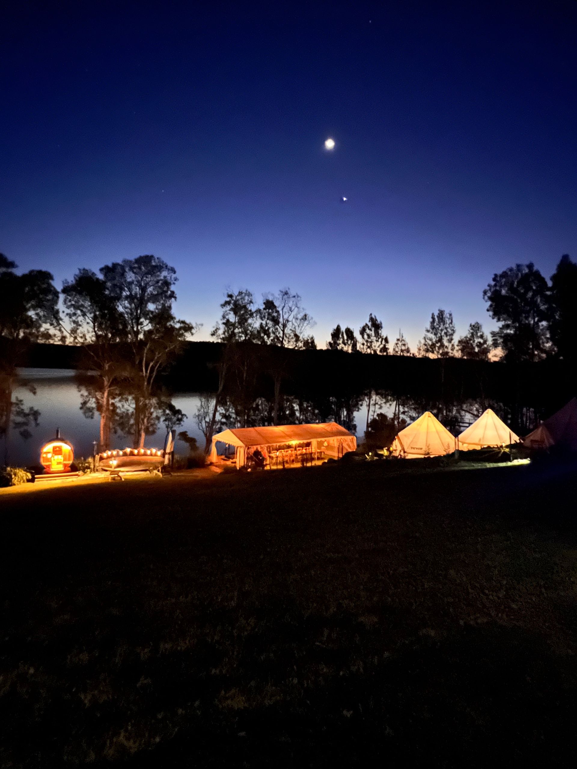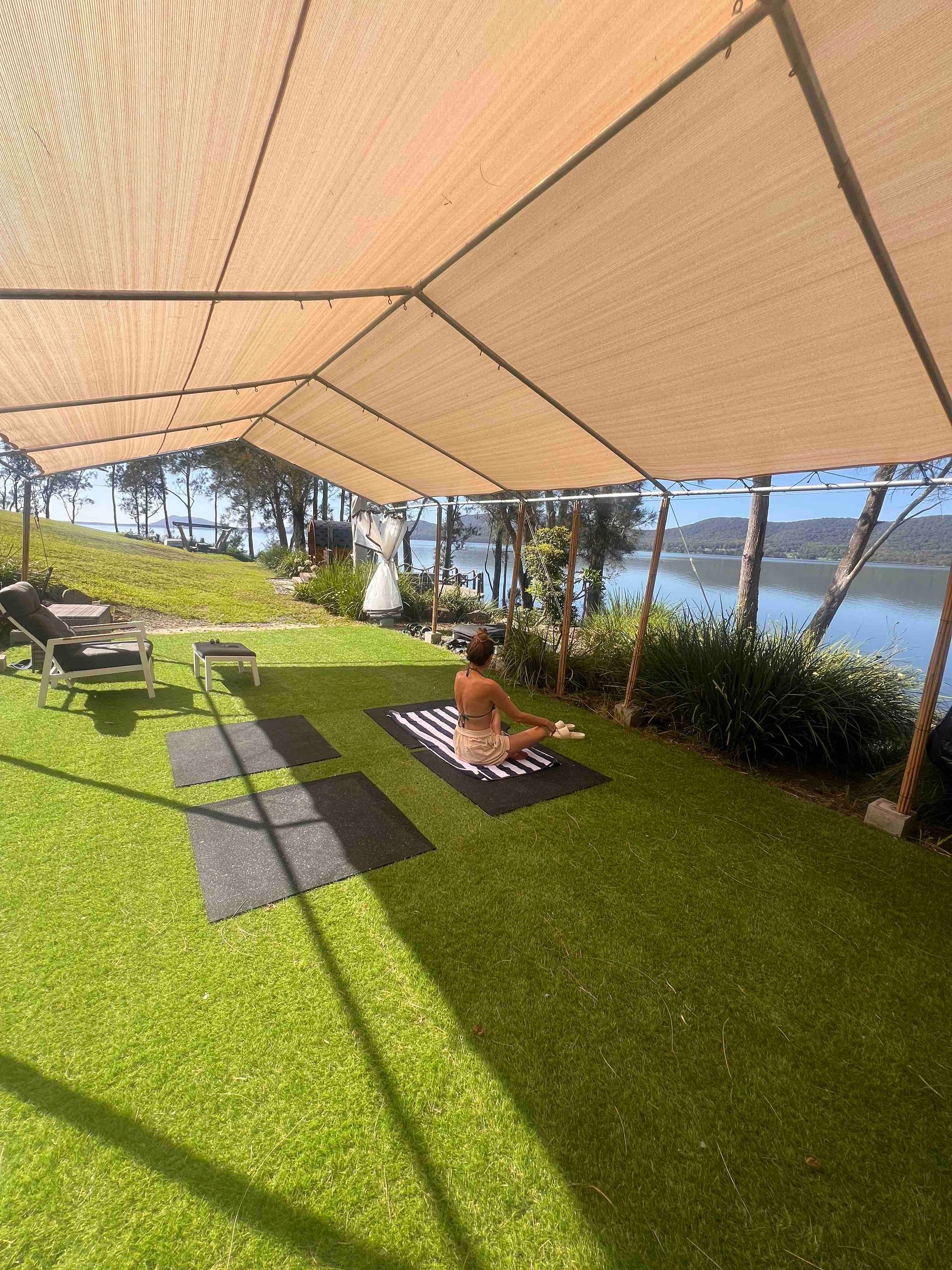 Serves as a stunningly situated covered outdoor gym, yoga space, function space. Our accommodation guests use the space to relax by the lake out of the sun. Retreat fitness session are conducted here along with post ceremony wedding cocktails.